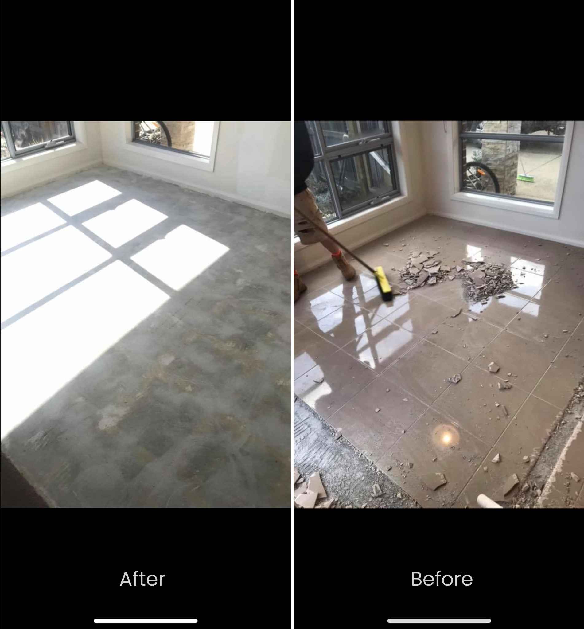 Melbourne Floor Removal TILE REMOVAL EXPERTS MELBOURNE Looking for professional tile removal and concrete floor grinding services for your commercial or residential property? Our business offers expert services for both large commercial jobs and small residential projects. We have years of experience in the industry and a team of highly skilled professionals who use the latest tools and techniques to ensure a fast, efficient, and safe removal process. We specialize in tile removal and concrete floor grinding, offering comprehensive services that include: Tile removal for large commercial properties, including retail stores, restaurants, and office buildings. Tile removal for small residential properties, including bathrooms, kitchens, and outdoor patios.